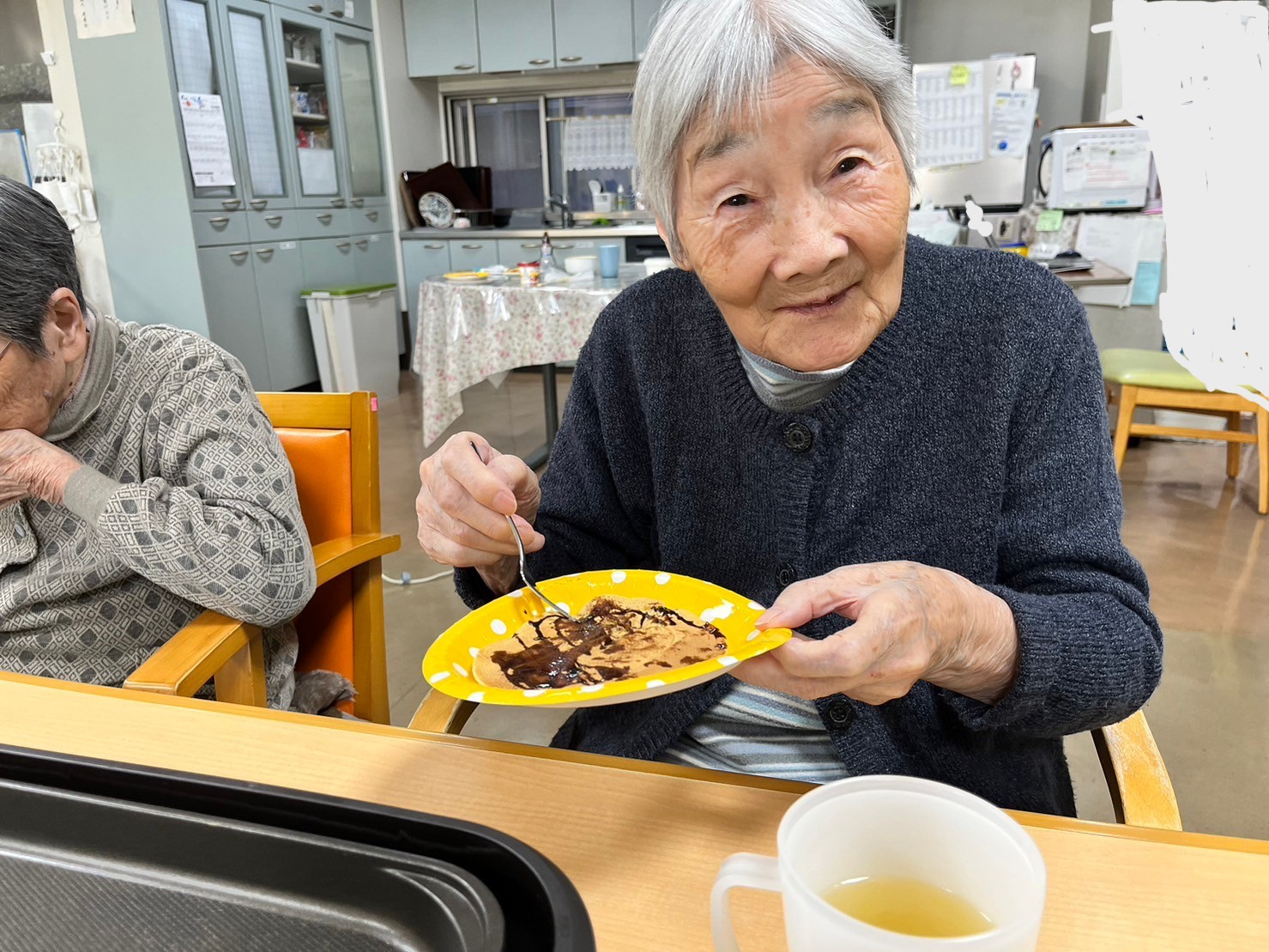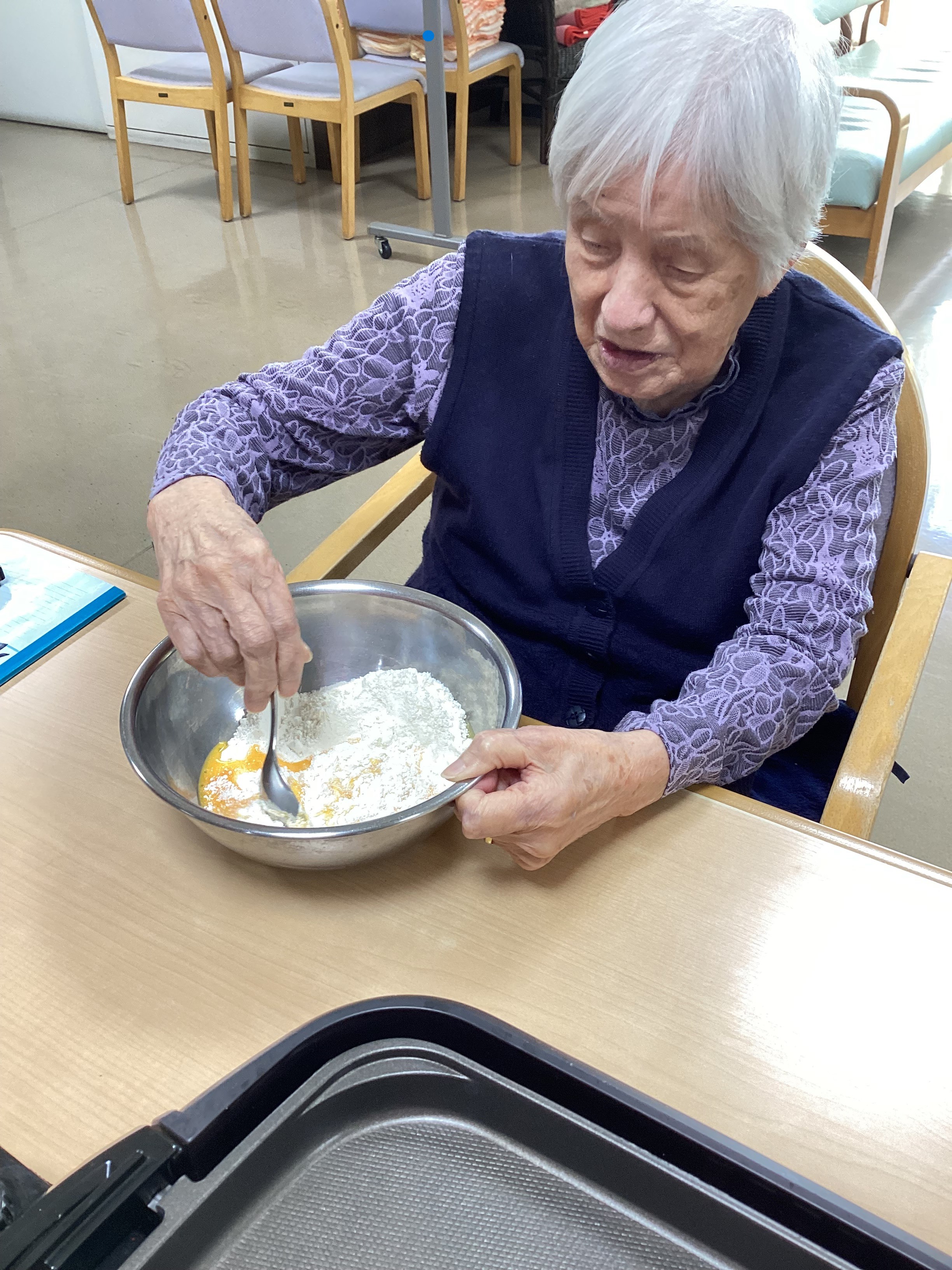 ホットケーキを作りました。混ぜる→焼く→食べるの手順は抜群ですよ♪頬張る皆様の笑顔を見ればこちらもお腹いっぱい(笑)ごちそうさまでした