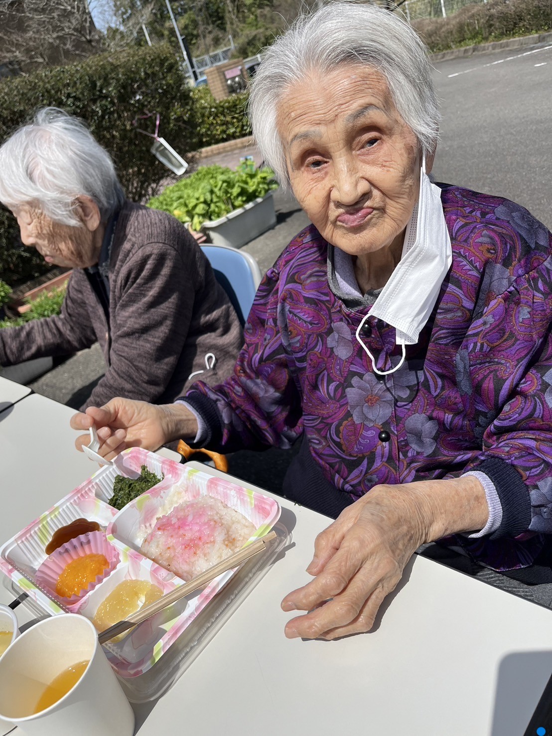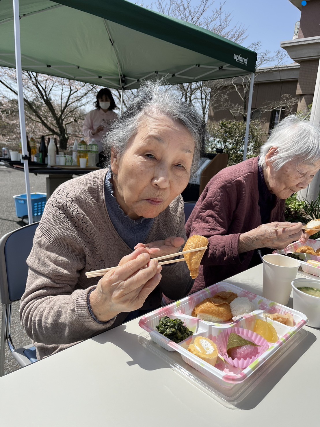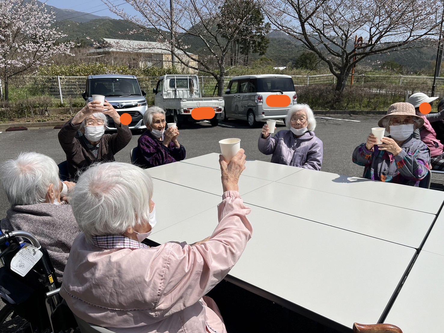 ケアハウス大地の方々と合同の、お花見会に参加させて頂きました。天気にも恵まれ、桜の咲いた青空の下でランチをし皆様の笑顔も、まるで満開の桜のようでしたよ