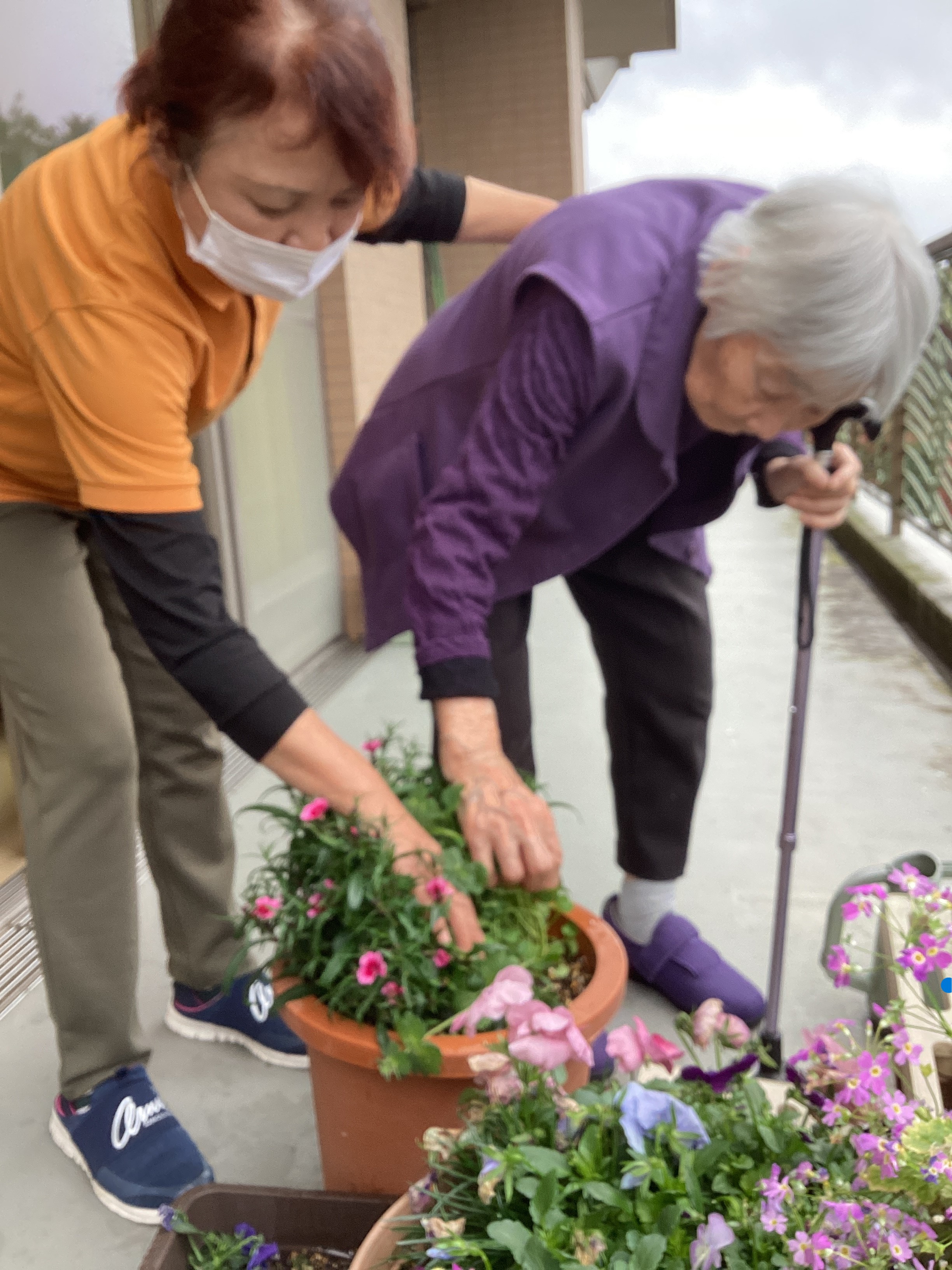 綺麗なお花を目の前に一段と目が輝かれ微笑ましくなられるお姿にこちらがウットリとしてしまいそうです。お花のお世話もいつもありがとうございます