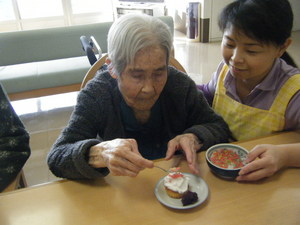 こちらの利用者様のお誕生日会はおやつの時間に行ないました(*´▽`*)ノ゛